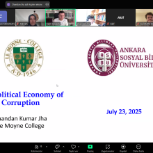 Moderatörlüğünü bölümümüz öğretim üyesi Dr. Öğr. Üyesi Fatih Kırşanlı’nın yaptığı bu etkinlikte, Le Moyne Üniversitesi Madden İşletme ve Ekonomi Okulu'ndan değerli katılımcımız Doç. Dr. Chandan Kumar Jha yolsuzluk ve ekonomi politikalarının ilişkisini ele aldılar. Ayrıca, konuşmacımız editörlerinden olduğu “Yolsuzluğun Politik Ekonomisi” adlı kitap üzerine değerlendirmelerini paylaştılar.